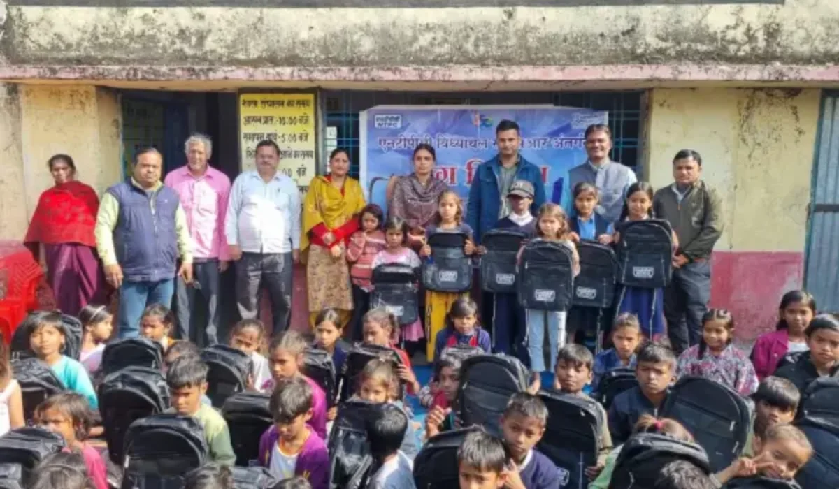 बच्चों के चेहरे पर खुशियाँ: एनटीपीसी ने CSR के तहत स्कूल बैग वितरित कर बच्चों को किया खुशहाल।