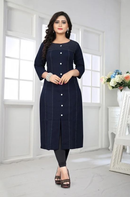 नेवी ब्लू कलर की यह कॉटन कुर्ती समर सीज़न मे आप कॉलेज और ऑफिस पहनने के लिए उपयुक्त है। इसमे आपको असहज महसूस नहीं होगा।