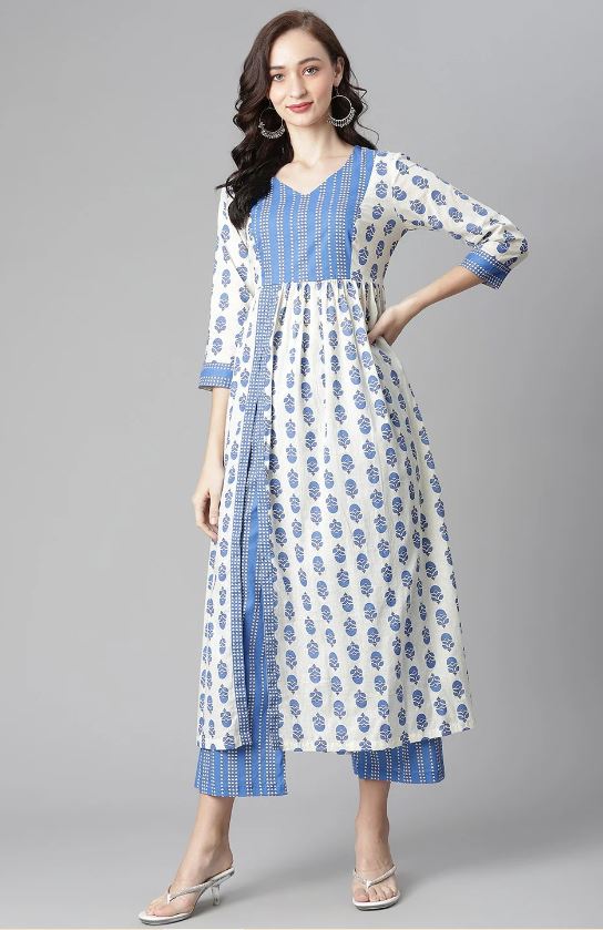 White-Blue Cotton Kurti