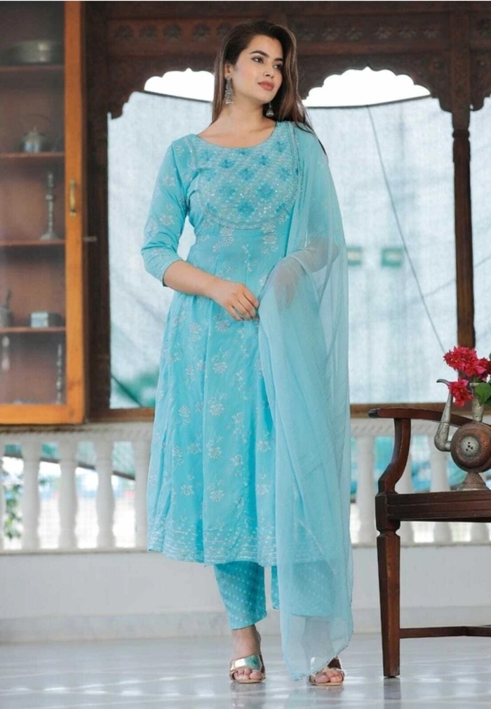 एक्वा रंग का ए-लाइन कुर्ता (Aqua Coloured A-Line Kurta)