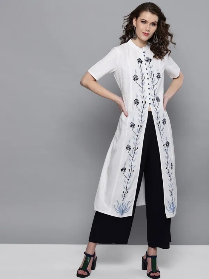 फ्रंट कट सफ़ेद लंबी कुर्ती (Front Cut White Long Kurti)
