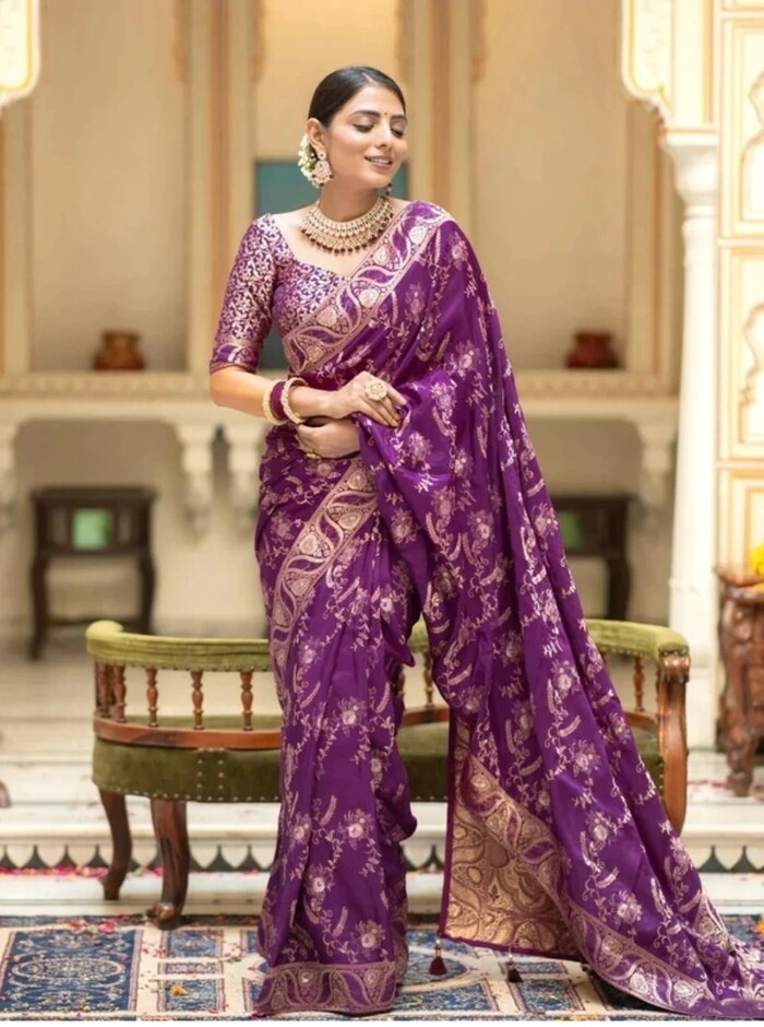यह वाइन रंग की साड़ी रेशमी कपड़े से बनी है। इस पूरी बुनी हुई साड़ी पर ज़री का काम किया गया है। पहनने के बाद यह साड़ी आपकी खूबसूरती में चार चाँद लगा देगी। आप इस साड़ी को उपहार के रूप में भी ले सकती हैं। वाइन के अलावा, आप इस साड़ी में समुद्री हरा और गुलाबी रंग भी चुन सकती हैं। इस साड़ी को पहनने के बाद आप पूरे दिन आरामदायक महसूस करेंगी।