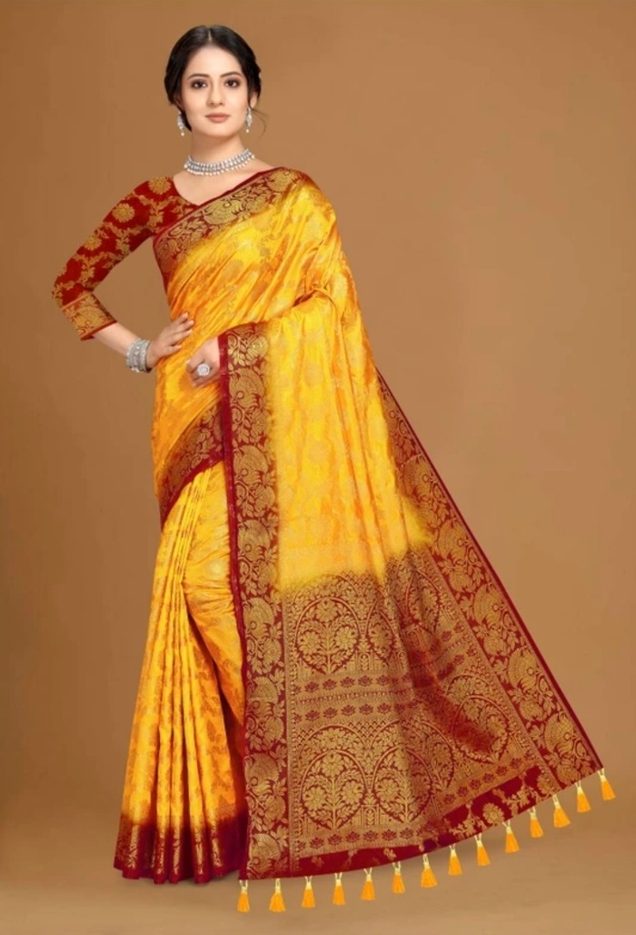 बनारस गोल्डन ज़री बुनी हुई साड़ी (Banarasi golden zari woven saree)