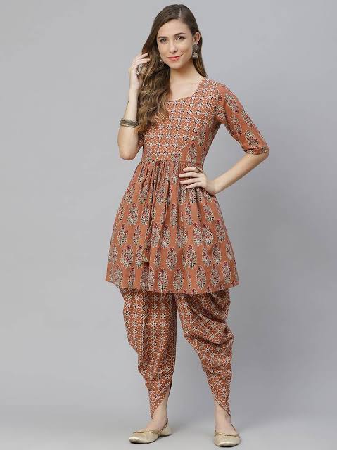 प्लेन कुर्ती के साथ प्रिंटेड धोती सलवार (Printed dhoti salwar with plain kurti)