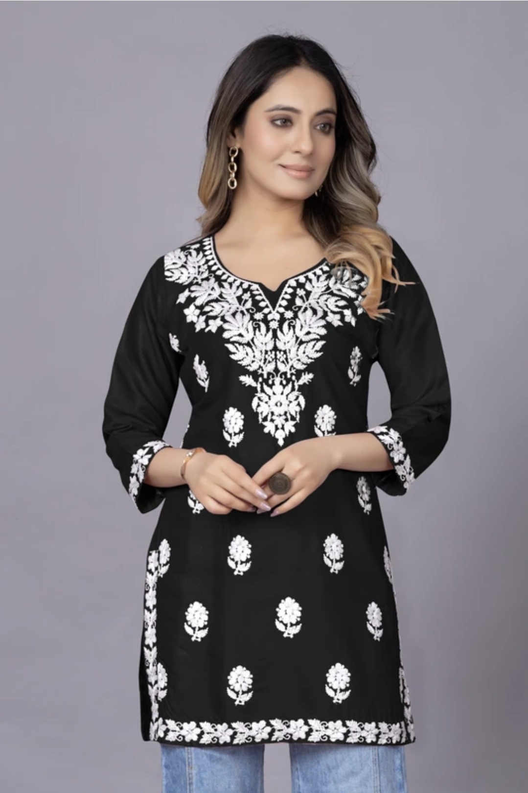 काली चिकनकारी शॉर्ट कुर्ती (Black Chikankari short Kurti)