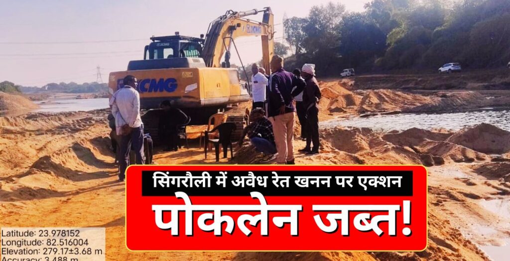 सिंगरौली में अवैध रेत खनन पर प्रशासन की बड़ी कार्रवाई, मयार नदी से पोकलेन मशीन जब्त