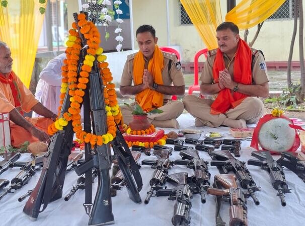 आज गुरुवार प्रातः अनुविभागीय अधिकारी गौरव कुमार पाण्डेय एवं निरीक्षक यू.पी. सिंह के नेतृत्व मंस मोरवा थाना परिसर में विधिवत शस्त्र पूजन संपन्न हुआ। पूजा से पूर्व थाने में मौजूद समस्त हथियारों – जैसे इंसास राइफल, पिस्टल, रिवॉल्वर, टियर गैस गन आदि – की सफाई की गई। इसके बाद पंडितजी द्वारा वैदिक मंत्रोच्चार के साथ पुष्प, कंकु व धूप-दीप से शस्त्रों की पूजा कराई गई। इस धार्मिक अवसर पर मोरवा पुलिस बल ने यह संकल्प लिया कि वे शस्त्रों का उपयोग केवल न्याय और सुरक्षा के लिए करेंगे तथा निर्दोष नागरिकों के विरुद्ध किसी भी स्थिति में बल का प्रयोग नहीं करेंगे। कार्यक्रम में सामूहिक रूप से जनकल्याण, सामाजिक सौहार्द और शांति की कामना की गई। इस अवसर पर थाना परिसर में श्रद्धा, आस्था और अनुशासन का सुंदर संगम देखने को मिला।
